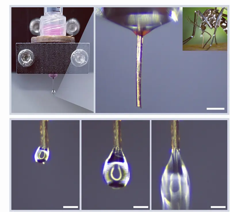 在实验过程中,研究人员选择了埃及伊蚊作为供体,他们小心翼翼地取下这些蚊子的口器,并对其进行了清洁处理,然后在其外部加了一层类似于“外骨骼”的支撑材料,以避免它们在使用过程中变形或断裂。